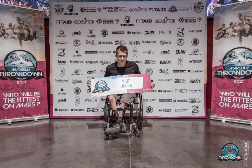 Une belle première expérience en compétition de CrossFit pour Julien Viot qui monte sur la seconde place du podium en fauteuil.